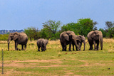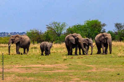 Herd of african elephants in savanna in Serengeti National park in Tanzania