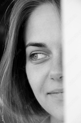 woman smile with beautiful eyes, closeup. black and white portrait. romantic and inspiring
