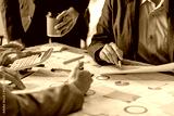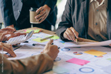 Analyzing business finance report on financial graph document during discussion at company meeting showing successful teamwork. Business Accounting Concepts close up pictures