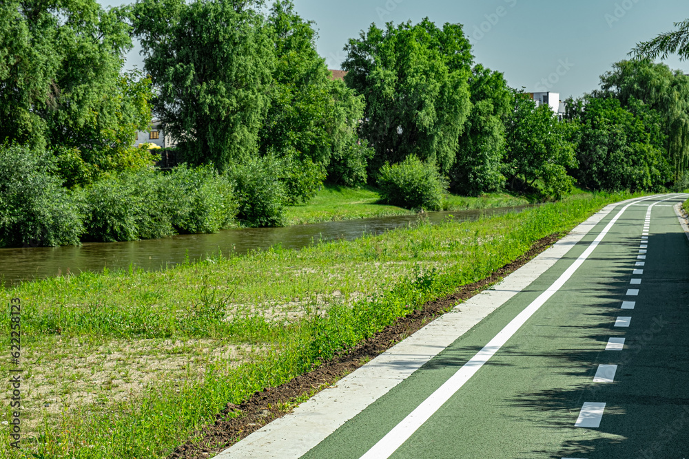 New cyclist paths built in the modern city for ecological bicycle transport, Sibiu, Romania