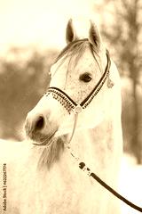 Amazing white arabian horse in winter