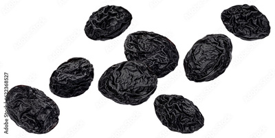 Dried plums, prunes isolated on white background