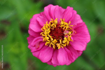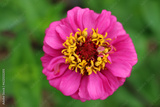 Pink Zinnia plant in bloom in the flowerbed on summer