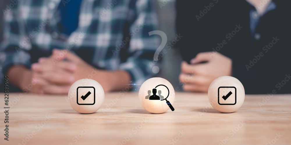 decision concept to find alternatives to success or business opportunities ,Finding right answer ,question mark ,concept of employment management ,Human Resources HR ,Employee Assessment