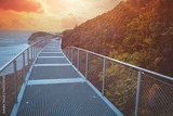 Metal walkway on the mount along the sea in autumn. Norway, Europe