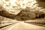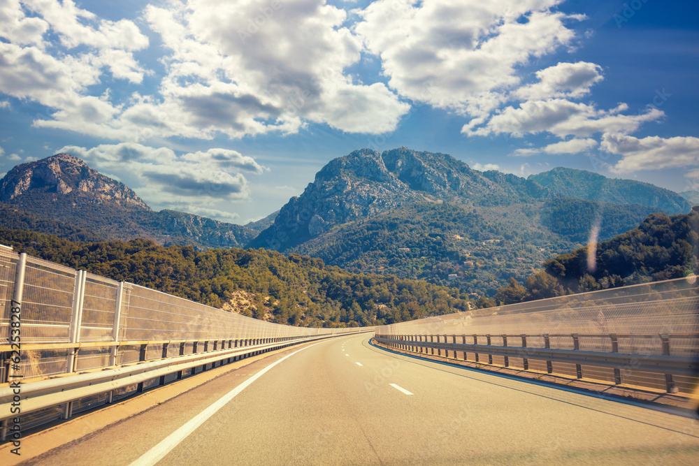Driving a car on a mountain road. View of Italy's beautiful nature through the windshield