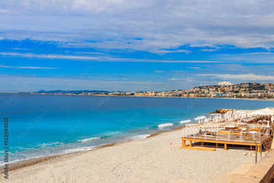 View of the beach near the Promenade des Anglais in Nice, France