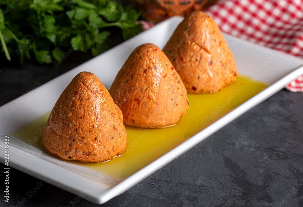 Traditional Turkish Spicy Surk Cheese Balls with Olive Oil from Hatay in Turkey. (Turkish name; Surk peynir)
