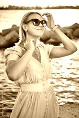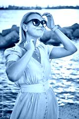 Woman on dress on sea background