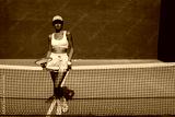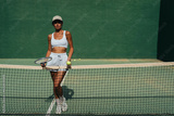 beautiful girl athlete plays tennis on the tennis court on a sunny summer day