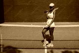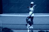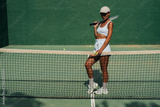 beautiful girl athlete plays tennis on the tennis court on a sunny summer day