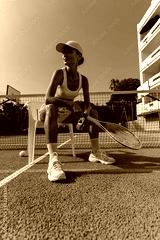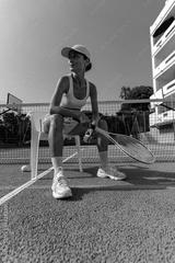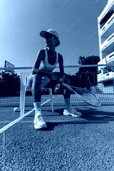 beautiful girl athlete plays tennis on the tennis court on a sunny summer day