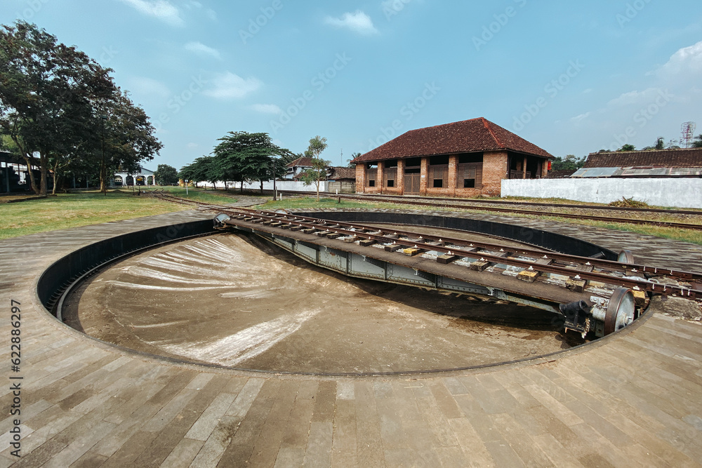 Old traditional turntable for locomotive train at Ambarawa Railway Museum, Central Java, Indonesia