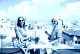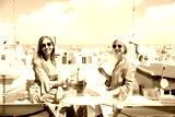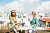 Two mature women, raising a glass of white wine, brimming with happiness