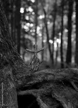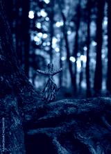 magic witch doll made of tree bast in forest, dark natural background. Forest grandmother, defender guardian spirit of nature. old pagan, Wiccan traditions. esoteric spiritual ritual, witchcraft