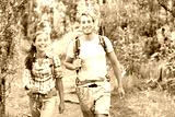 Outdoor activity couple hiking - happy hikers