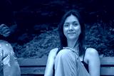brunette woman on a bench park young beautiful girl student model with her friend