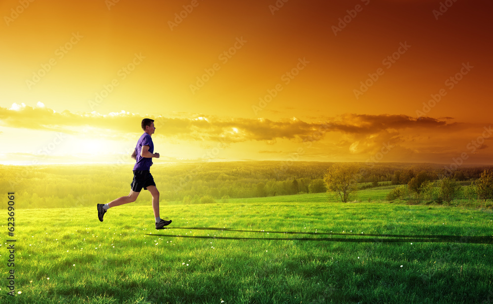sunset and running young man