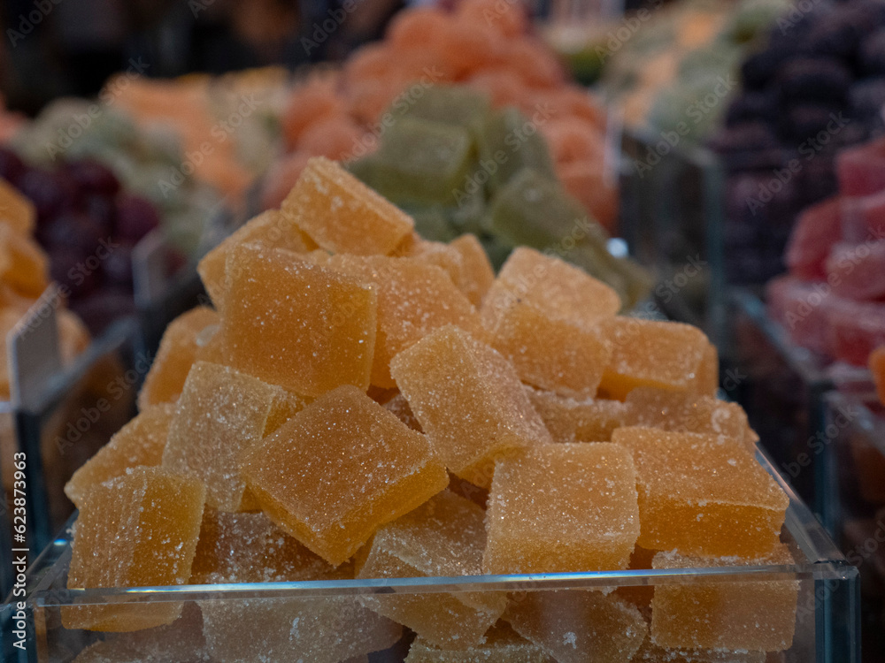 Jellies boqueria barcelona fruit seafood meat ham food market