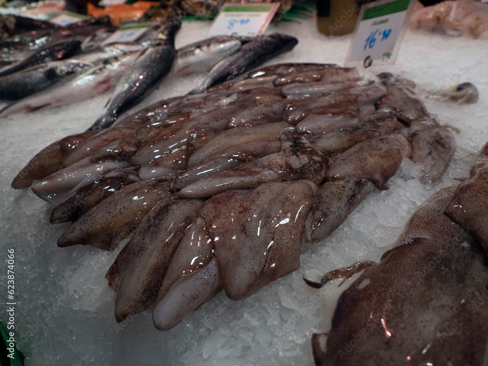 squids boqueria barcelona fruit seafood meat ham food market