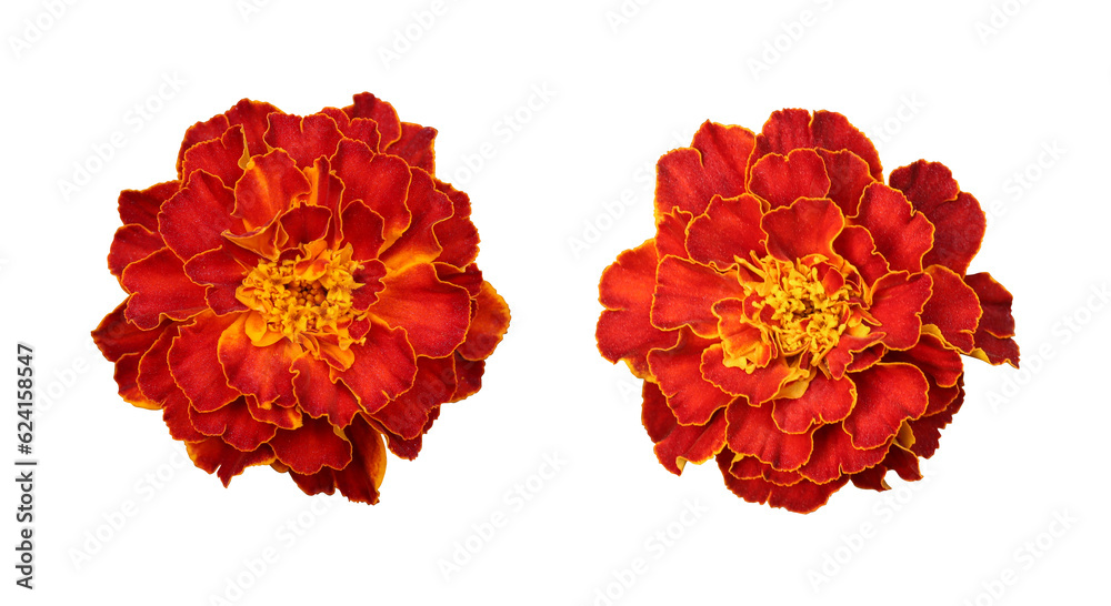 Red orange marigold flower isolated on transparent background