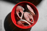 Raw pieces of ilish .the world famous ilish fish of padma river of bangladesh