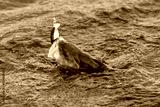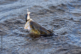 Hooked European perch fighting in a lake caught with a wobbler lure by fisherman in Western Finland in July August 2023.