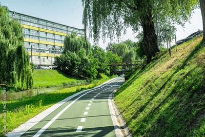 New cyclist paths built in the modern city for ecological bicycle transport, Sibiu, Romania