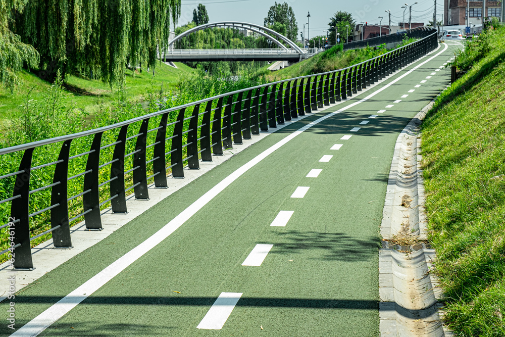 New cyclist paths built in the modern city for ecological bicycle transport, Sibiu, Romania