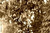 Close up of branch with ripe pear in garden. One ripe pear on tree in orchard with sunny light
