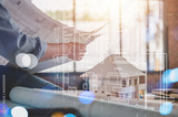 blueprint, technology, iot, plan, architect, project, engineer, construction, smart home, architecture. engineer's blueprint inspection for construction development guided by blueprint room hud.