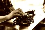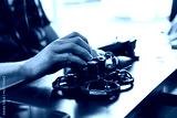 unknown man turning on FPV drone at the shop, professional photography. High quality photo