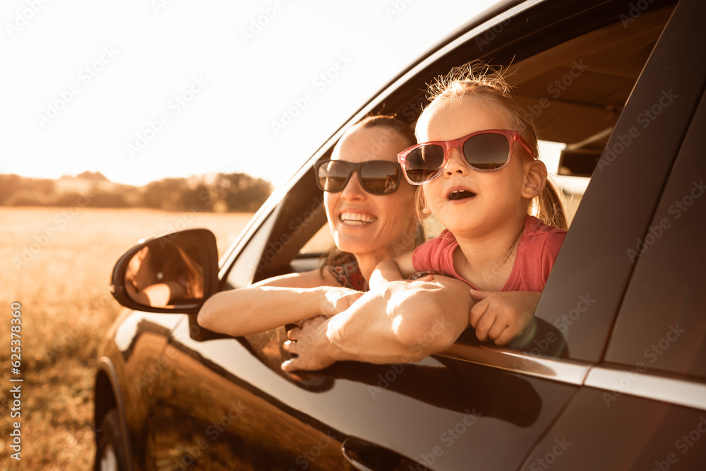 Family mother daughter on a road trip, bonding and enjoying a carefree summer holiday journey together.