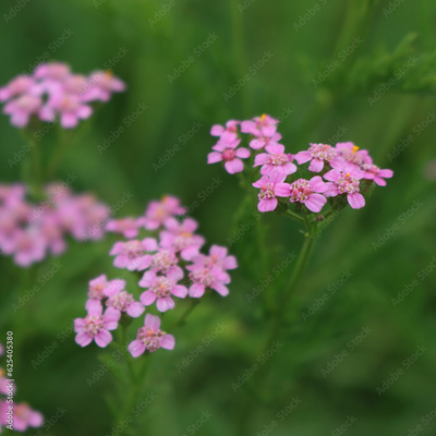 Close-up of pink yarrow flowers in th e meadow. Achillea millefolium wildflower in Italy