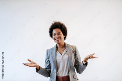 Portrait of a multicultural confident businesswoman welcoming mentees.