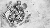 Delicious and healthy green salad of different leaves and vegetables with seeds and olive oil.
