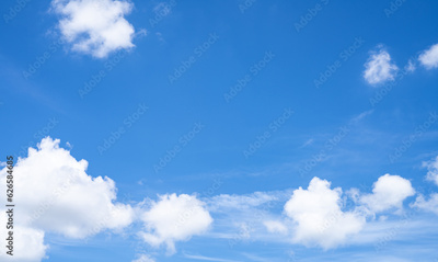 Beautiful blue sky and white cumulus clouds abstract background. Cloudscape background. Blue sky and fluffy white clouds on sunny days. Beautiful blue sky. World Ozone Day. Ozone layer. Summer sky.