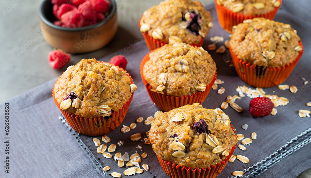 Vegan banana carrot muffins with oats and berries