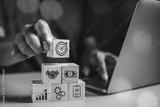 Investment for ultimate goals, Targeting the business, business development concept. Hand arranging wood block stacking with business strategy and action plan.