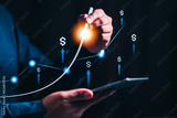 Financial, investment, finance, stock, growth, wealth, invest, investor, trade, increase. Pen drawing line to growth and finance investment. a stock wealth increase at over point is take benefit.
