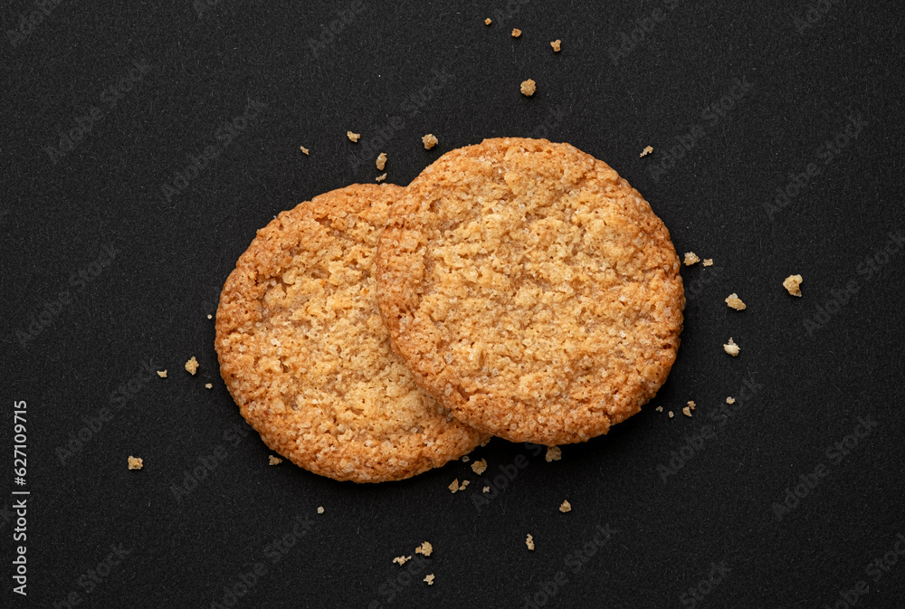 Oatmeal cookies on black background, full depth of field