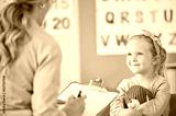 Girl child, psychologist and writing with notes, smile and listening for support, help and school counselling program. Woman, female kid and conversation for mental health, psychology and wellness