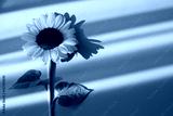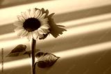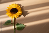 Yellow sunflower on beige background with aesthetic sunlight shadows. Minimal still life floral composition
