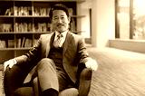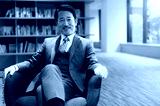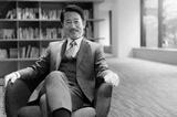 笑顔が素敵な椅子に座るハンサムな社長のイメージ コピースペースあり