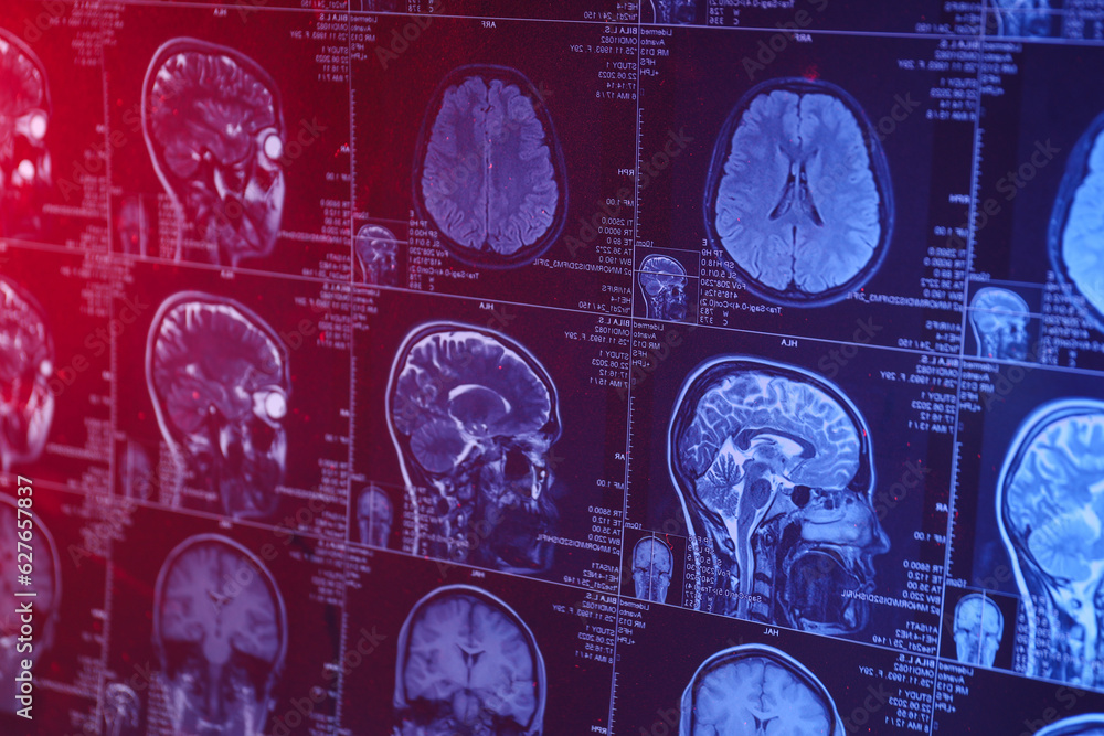 MRI or magnetic resonance imaging of the head and brain. Close up