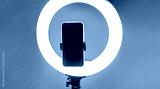 Modern equipment for photographers and make-up artists the ring led lamp for photography and video shooting, modern technology.