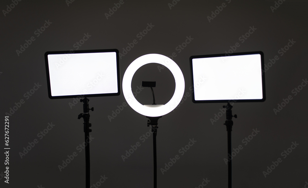 Modern equipment for photographers and make-up artists the ring led lamp for photography and video shooting, modern technology.