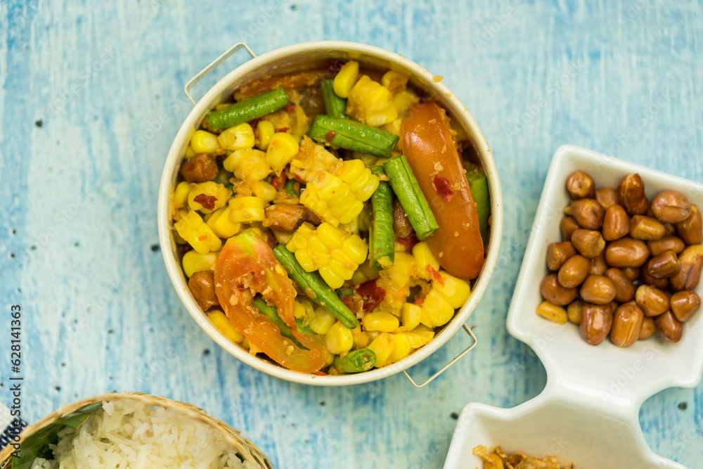 Papaya salad with corn in Thai called Somtum Thai Khao Phod, is famous Thai food