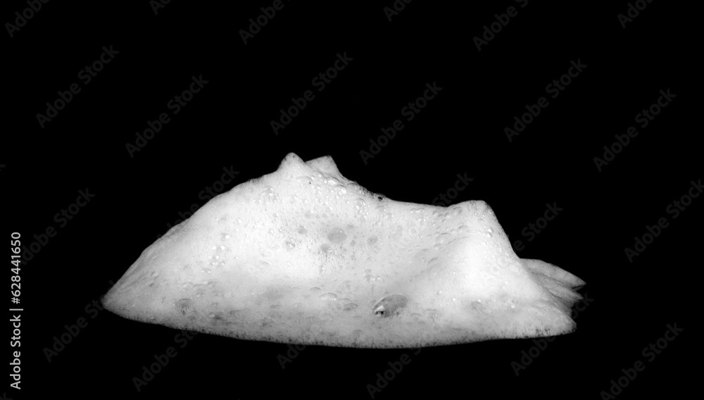 liquid white foam from soap or shampoo or shower gel Abstract soap bubbles. Set foam, soap bubble isolated on black, with clipping path texture and background.