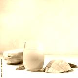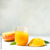 mango juice. Fresh tropical fruit smoothie on a white background
